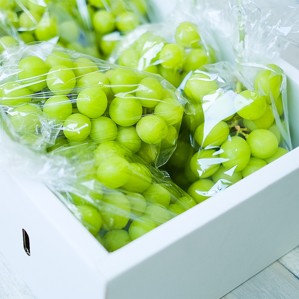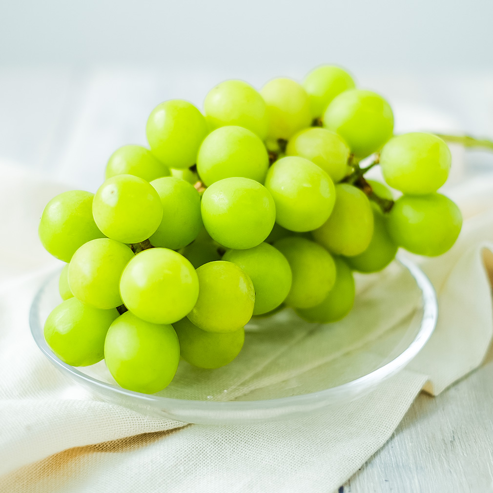 美しい黄緑色の果皮に包まれた、高級ぶどう「シャインマスカット」。